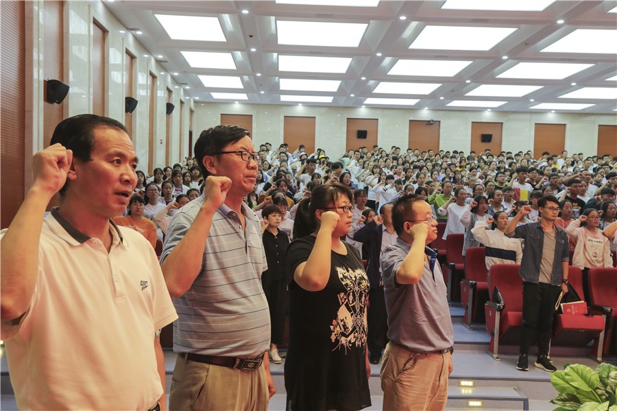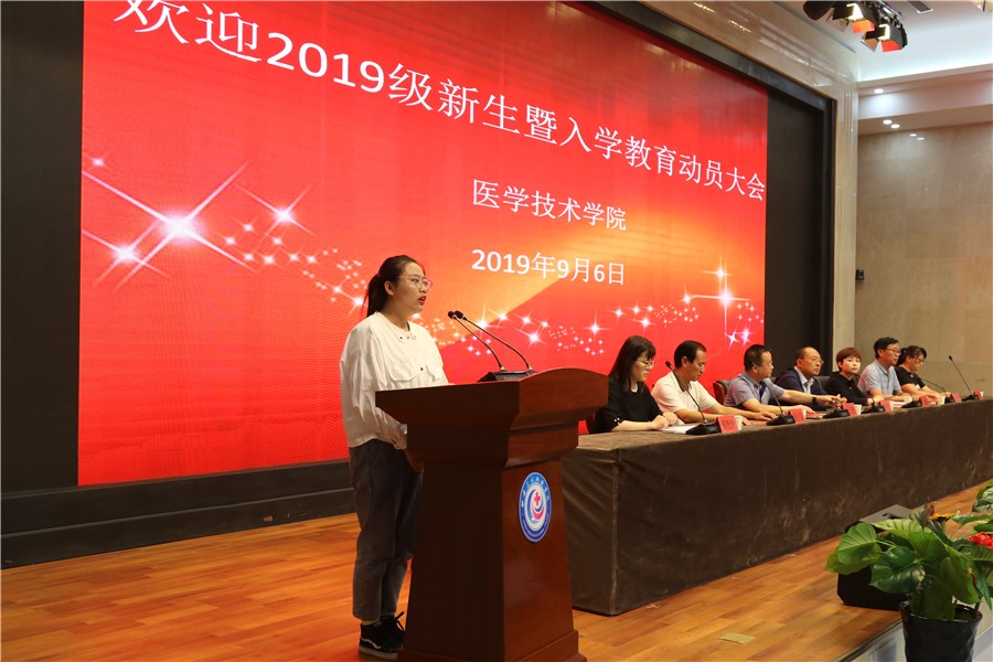 9月6日上午,天高气朗,阳光灿烂,在喜庆而祥和的校园氛围中,医学技术学院欢迎2019级新生暨入学教育动员大会在学校多功能厅隆重举行,学生工作处处长张绍进、团委书记衡冰、学院领导、全体辅导员(班主任)及近1000名新生参加了会议,会议由学院党总支书记王义安主持。