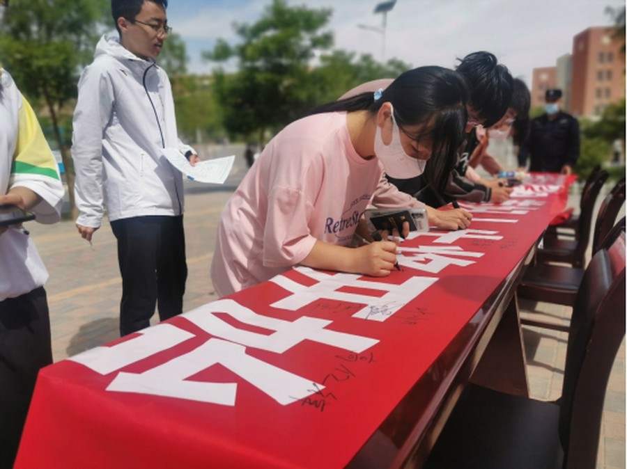 三、学生工作处、党委宣传部、保卫处等部门在学校一号餐厅广场开展了《珍爱生命 远离毒品》联合宣传教育活动,邀请到西岔镇派出所温佩东警官进行全程指导。学校三百余名师生参加了本次活动。
