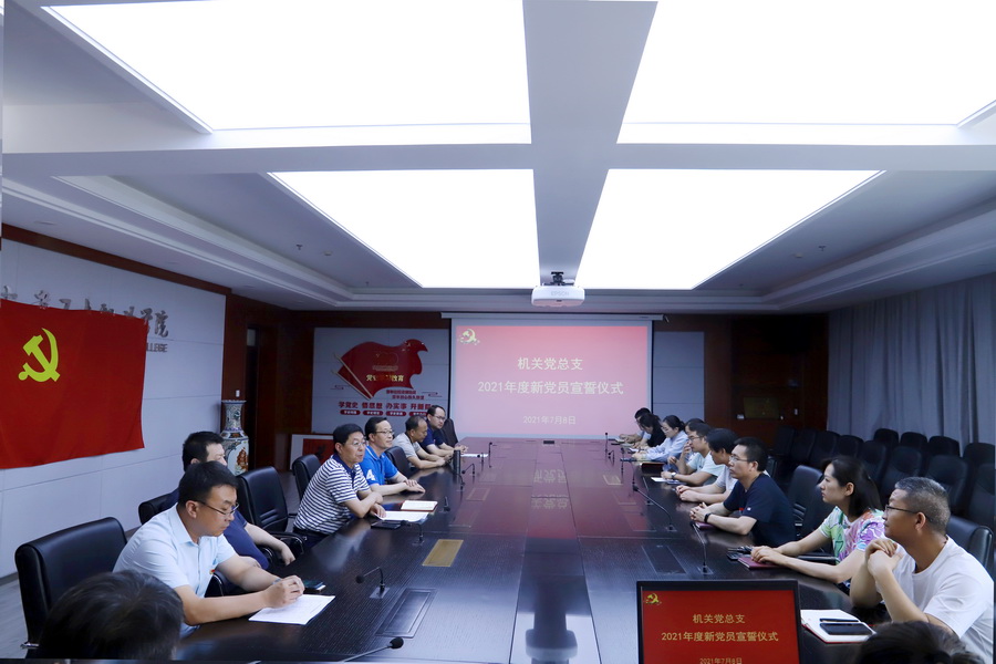 在中国共产党百年华诞之际,7月8日下午,99905新莆京机关党总支组织2021年度6名新发展预备党员集中入党宣誓,仪式在行政楼717会议室举行,党委办公室主任张强、党委组织部部长许永全、宣传部部长郭晓洲与6名新发展党员入党介绍人一起见证这一庄严神圣的时刻。