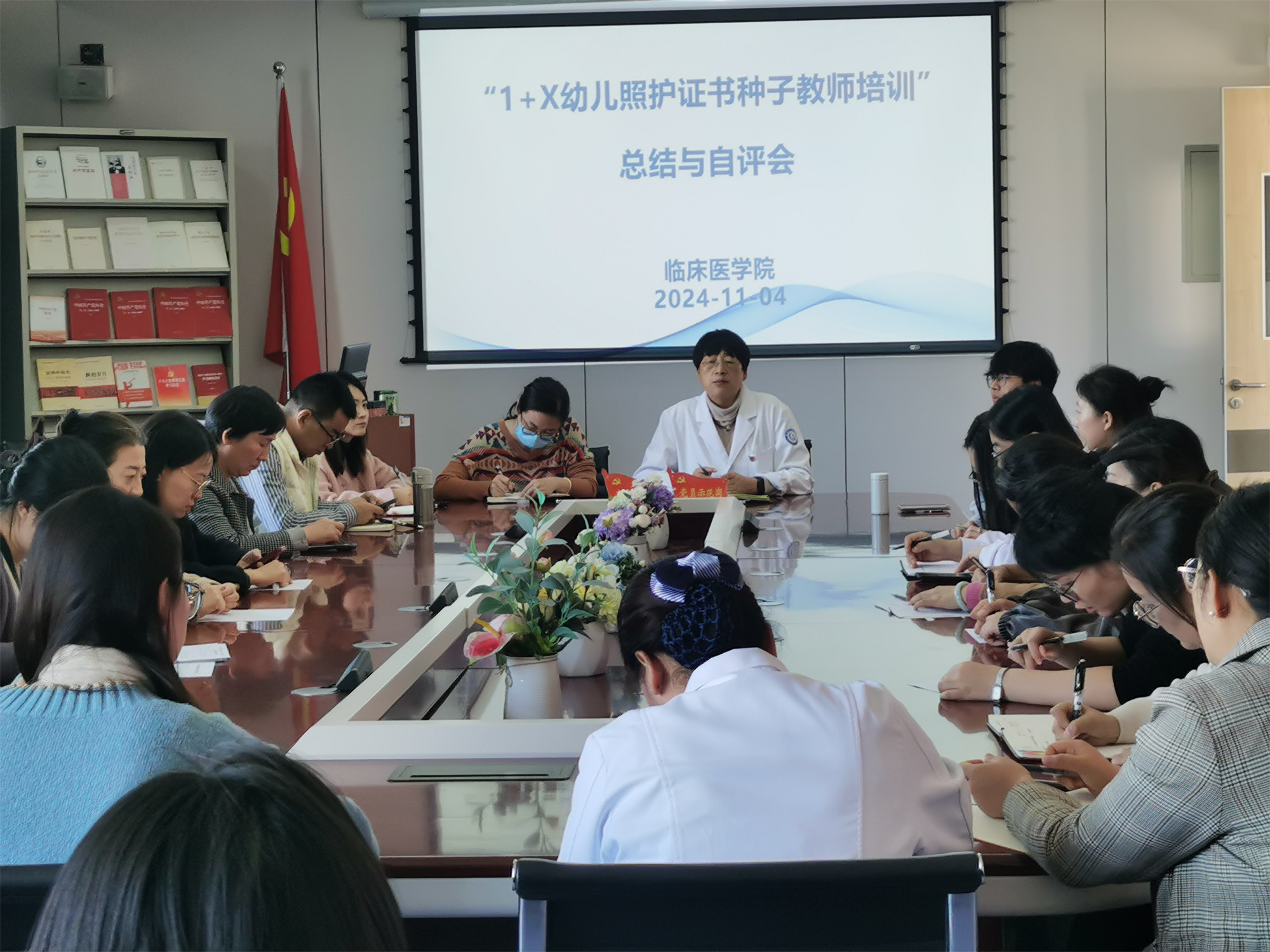 11月4日中午,临床医学院召开“甘肃省2024年教师素质提升国家级培训项目——1+X幼儿照护证书种子师资培训”总结与自评会议,临床医学院院长寇桂香、副书记张妤,培训项目教师参加会议。
