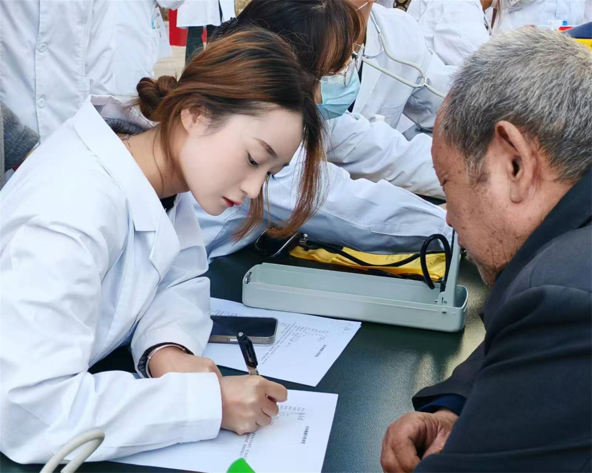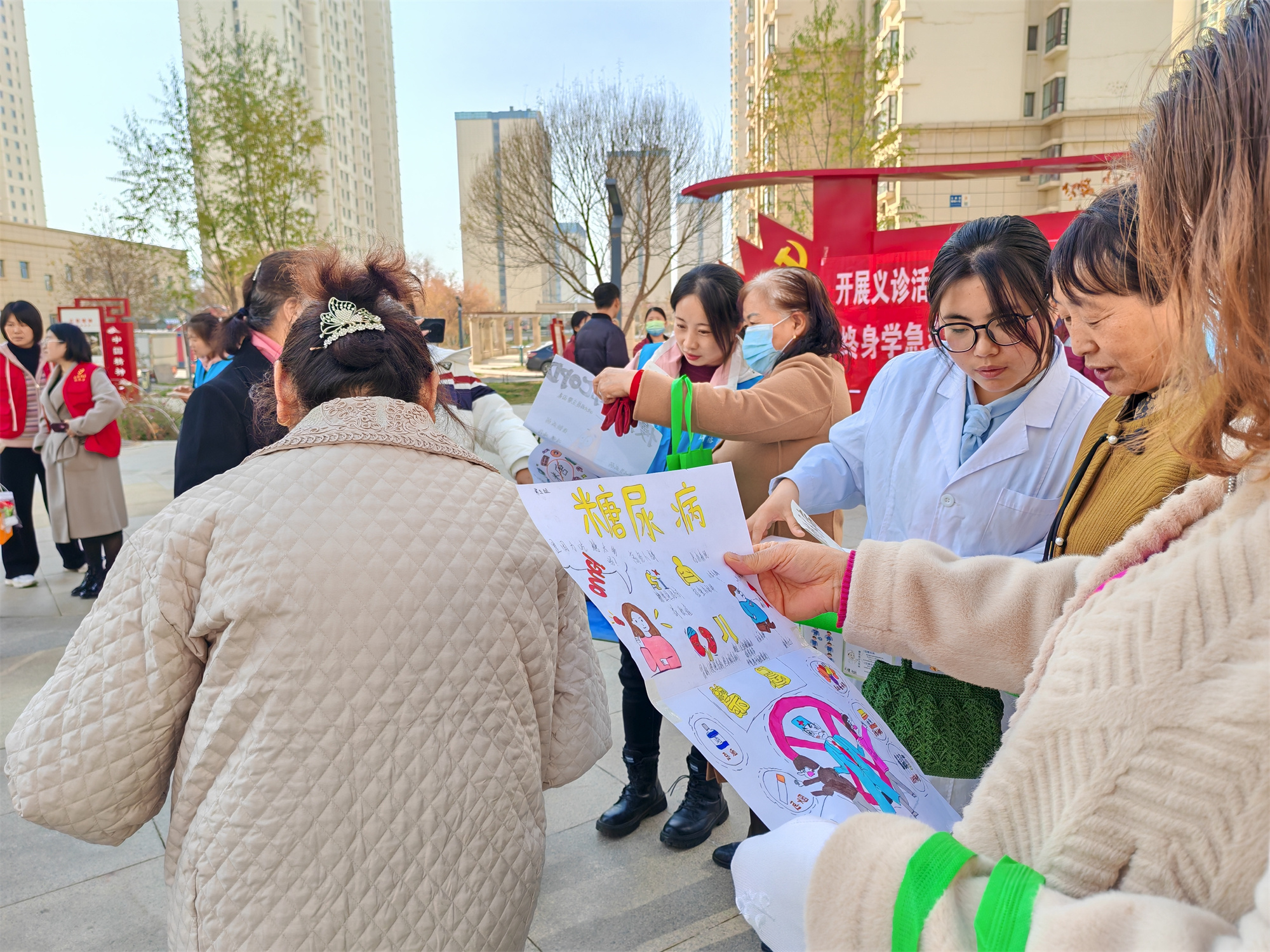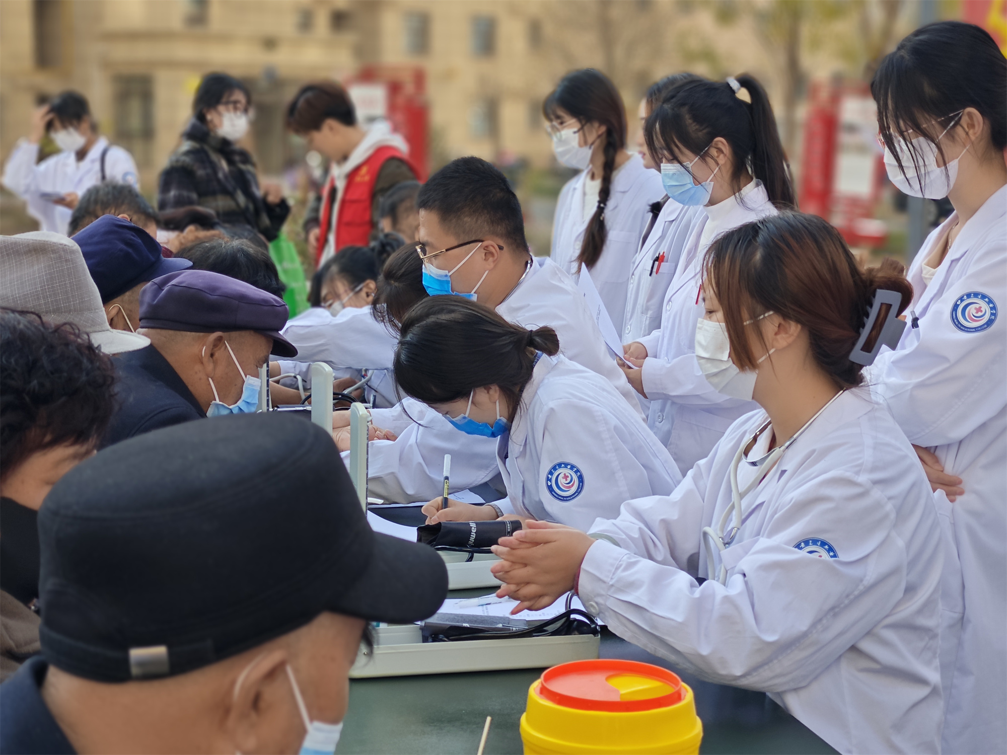 此次活动得到了文曲社区党支部的大力支持,活动中,老师和学生围绕世界慢阻肺日主题“认识你的肺功能”和联合国糖尿病日主题“糖尿病与幸福感”为社区居民开展了健康讲座。在小区广场,学生们为居民测量血压、检测血糖,耐心解答居民们的健康问题。并在小区工作人员的带领下,为行动不便的居民提供上门服务。