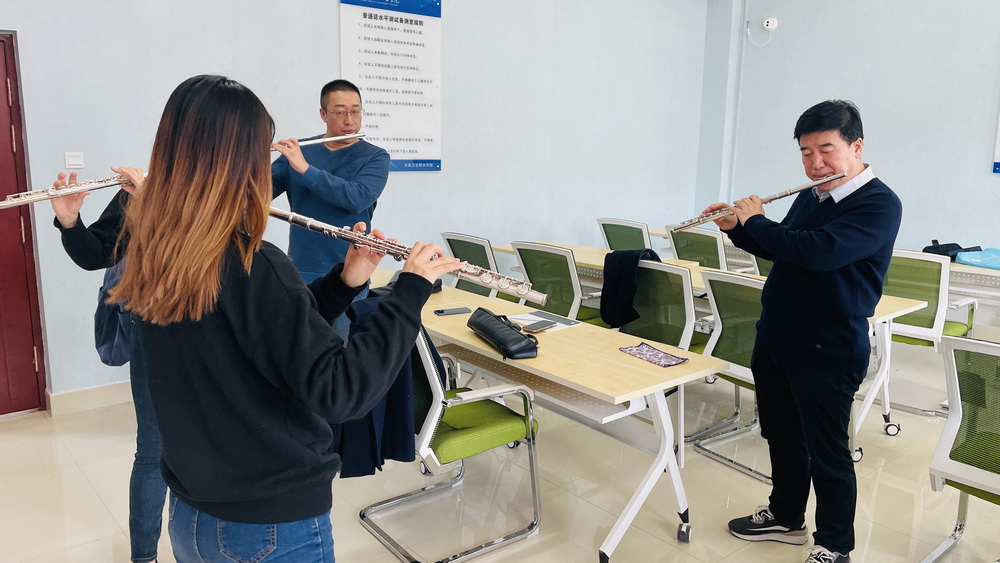 3月3日下午,学校教职工管乐队于大学生活动中心三楼排练室内进行了本学期首次排练。