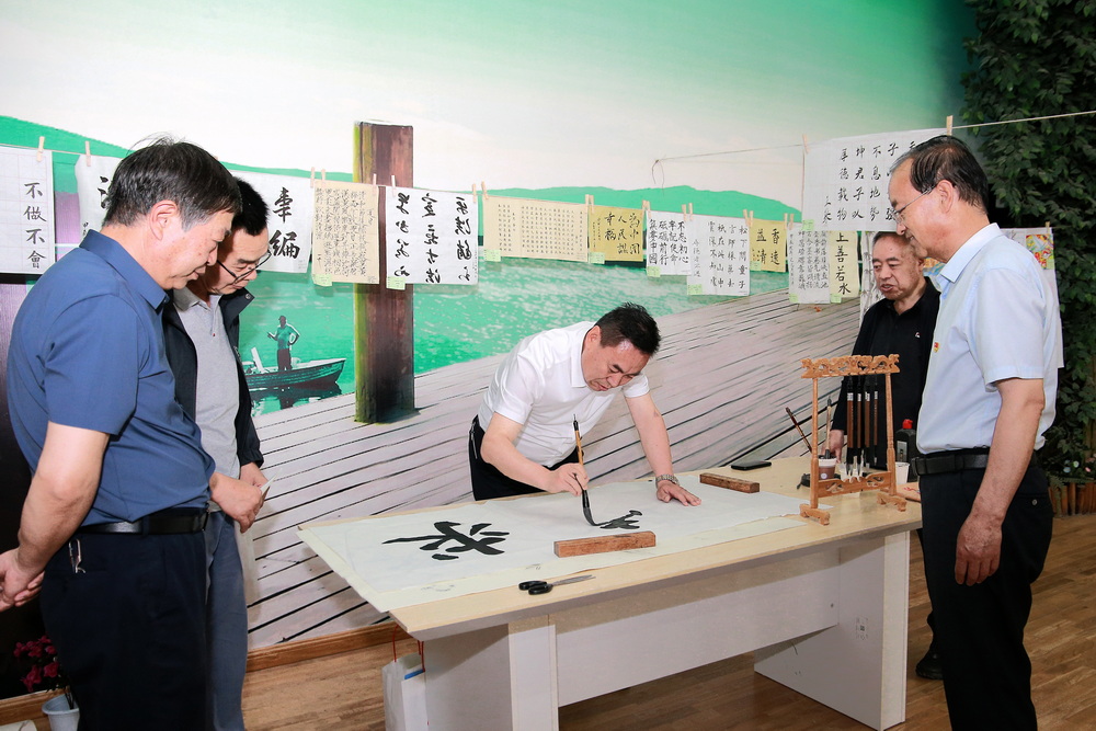 前来参观的师生络绎不绝,优秀的艺术作品吸引广大师生长时间驻足观赏。此次展览充分展现了新莆京官网广大师生员工的艺术才华和积极向上的精神风貌,也为广大师生提供了一个相互学习、相互交流的舞台。党委书记包磊、副校长高博等学校领导和老师还应邀在现场挥毫泼墨,进行了书法创作表演,在场师生无不为这些老师们深厚的艺术造诣所折服,精美的作品赢得师生们连声赞叹和热烈掌声。多位老师还为现场的同学们进行了书画摄影知识讲解。