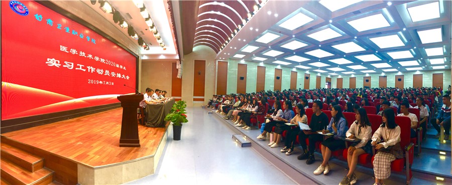 7月3日上午,学院在一号教学楼学术报告厅组织召开了“2020届学生实习工作动员安排大会”,学校实习就业处领导、医技学院领导、实习单位代表、2020届全体班主任及学生共计630余人参加了大会,会议由学院党总支书记王义安主持。