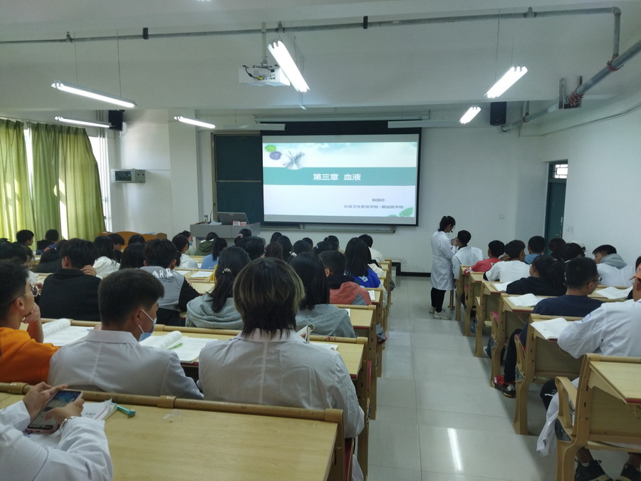 10月11日下午,基础医学院开展了青年教师 “亮相课”教学活动。青年教师陈国珍老师进行了生理学“血量、血型与输血”的公开教学。