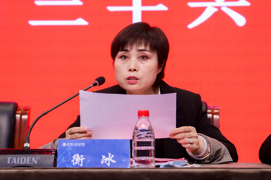 闭幕式上,衡冰书记宣布了当选的3名新一届学生会主席团成员和25名学生会委员名单。张绍进部长对本次学代会进行了全方位的总结。最后,康逢民副校长讲话,他代表学校党委向大会的圆满召开及当选的新一届学生会主席团成员和学生会委员表示热烈祝贺,对学生会今后的工作和学生会干部提出了几点希望。一是认真学习贯彻党的十九届六中全会精神。二是发挥好团结、引领广大青年学生的积极作用。三是进一步增强服务意识,真正做到从同学中来、到同学中去。四是更加积极参与学校民主管理、民主监督,维护学生的合法权益。五是学生会干部要感恩同学们的信任,珍惜机会,努力提升自身素质。