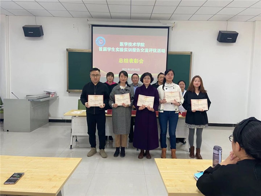为积极贯彻落实《医学技术学院实验实训管理办法》,加强实验实训教学规范化管理,提高教学质量,培养合格的高水平技术技能卫生人才,同时为进一步完善和修订学院《学生实验实训报告手册》,医学技术学院举办了首届学生实验实训报告交流评优活动,3月24日下午,学院召开了活动总结表彰大会。学院领导、教研室主任、评委、所有实验员和获奖师生代表参加会议。会议由学院副院长吕荣光主持。