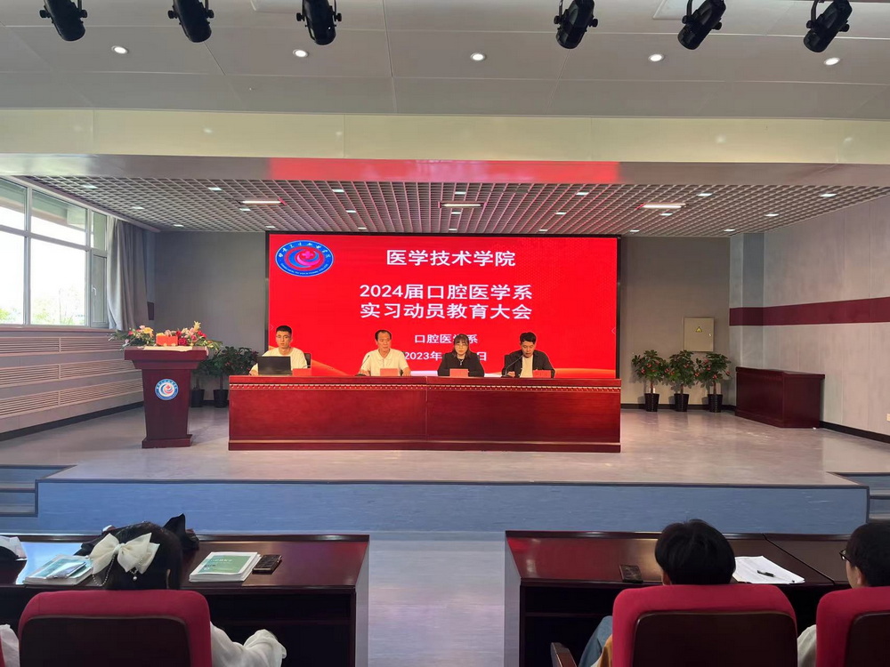 为进一步做好学院2023-2024实习工作,引导学生做好实习前的各项准备,推进实习工作的顺利进行,6月14日-16日,医学技术学院在临床医学系一楼学术报告厅分别举行口腔医学口腔医学技术医学影像技术医学检验技术专业实习生实习动员教育大会”,学院领导、各专业教师、实习班级辅导员班主任、全体实习生参加了会议。
