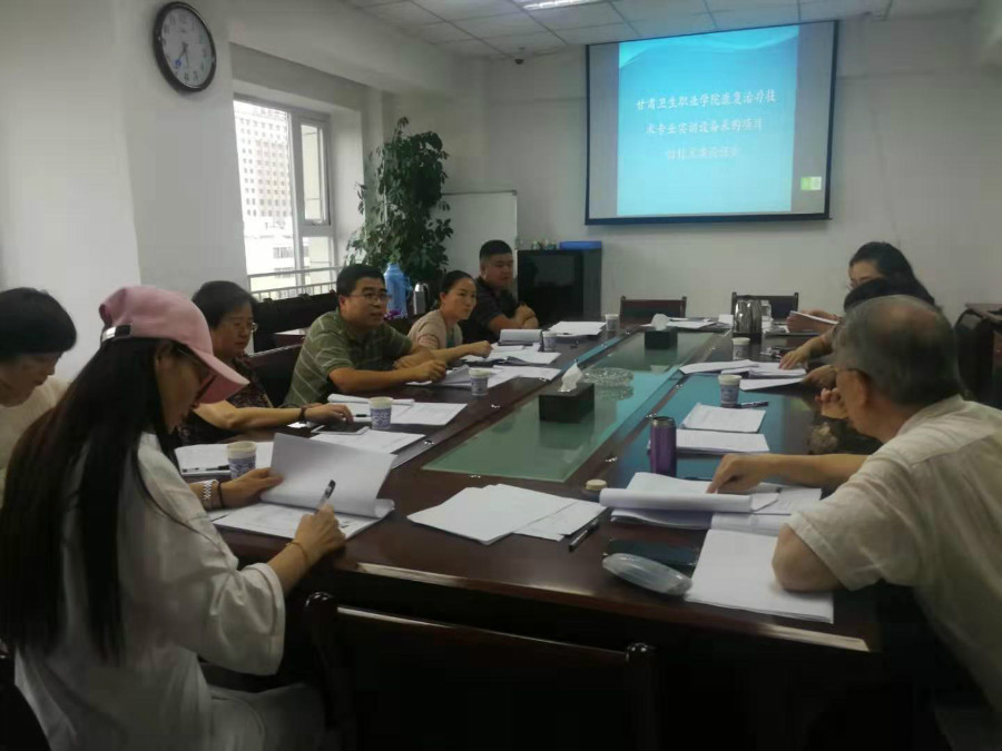 7月18日下午,学校在第三方代理机构召开康复治疗技术专业实训设备采购项目招标方案论证会议。会议由国有资产管理处处长张常俊主持,甘肃省第三人民医院副院长鲁丽萍、甘肃省紧急医疗救援中心高级工程师王可、甘肃省公共卫生医疗救治中心主任医师同重湘作为专家出席论证会议,学校临床护理学院、国有资产管理处等部门负责人及教师代表参加了会议。