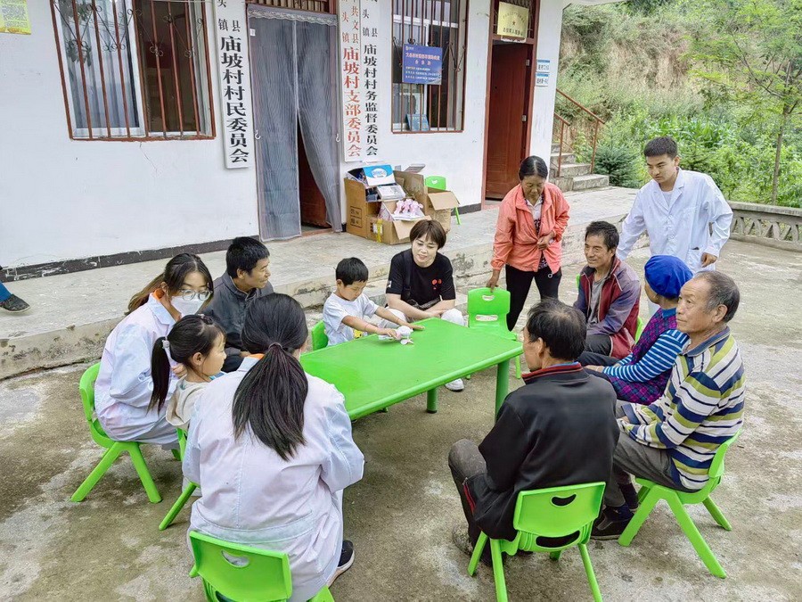 本次实践活动由推普宣讲、党史学习教育、爱心医疗、发展成就观察等四支志愿服务小分队组成。6月25日至26日,实践团队先后来到陇南市文县梨坪镇元头村与桥头镇庙坡村,与新莆京官网驻村干部一起为在村群众开展了健康义诊、助学支教、推普宣传、党史学习教育等系列活动。在健康义诊现场,中医世家李世昌老师带领队员们为在场村民进行义诊,耐心解疑答惑、测量健康指标,提出日常预防、保健方案及治疗建议,对村民进行健康监测,加强村民对疾病和慢性病的认识和防范。义诊活动先后为130余名村民提供了医疗卫生服务,得到了村民们的一致赞扬。在助学支教活动中,队员们向在场的孩子们赠送了学习用品。本着感恩乡村、回报乡村、服务乡村的宗旨,发挥专长优势,进行课业辅导,开展安全教育;结合游戏互动,激发孩子的学习兴趣,帮助学生巩固基础知识,拓宽他们的视野,用面对面的温情、手把手的相扶和心贴心的交流,助力孩子们成长。孩子们纷纷向队员们表示感谢,立志好好学习,争取早日成才。在推普宣传和党史学习教育活动中,队员们向在场群众发放了宣传国家通用语言文字政策及党史学习教育相关材料,并与当地群众及老党员同志进行了学习交流,进一步了解了国情民情。