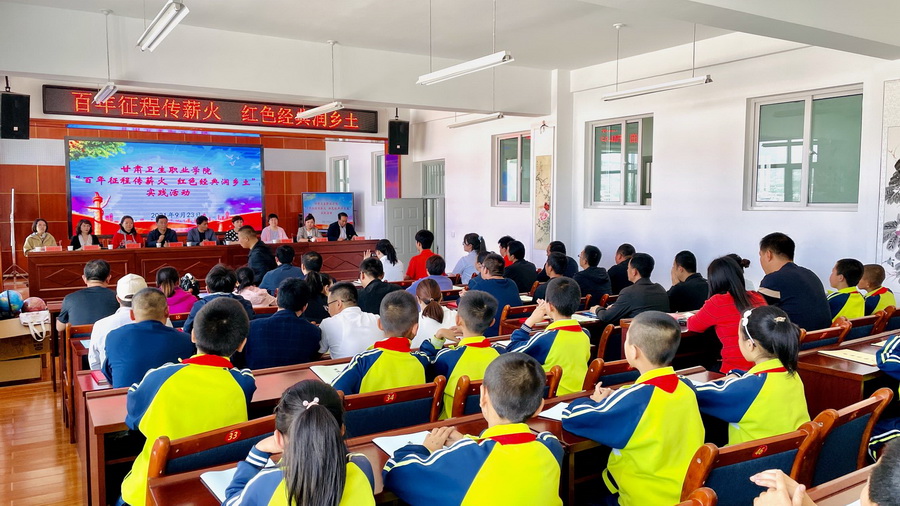 下午,师生赴通渭县姜滩小学开展了“百年征程传薪火 红色经典润乡土”主题活动。通渭县教育局党组成员陈永红和姜滩小学校长苟喜钱出席活动,首先,由新莆京官网学生表演了《少年中国说》《我爱你中国》等红色经典诵读,新莆京官网普通话省级测试员周启平给学生们详细讲解了如何说好普通话,并强调了推广普通话的重要意义;随后,新莆京官网思政教研室主任何静为在场全体师生作了一堂题为《赓续精神血脉 做共产主义接班人》的党史教育宣讲。活动最后,随行师生向姜滩小学学生赠送了书籍和学习用品。