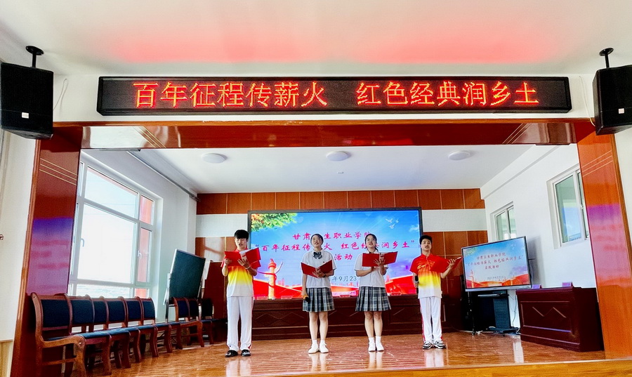 为贯彻落实教育部、国家语委《中华经典诵读工程实施方案》有关要求,发挥经典诵写讲实践活动对基层语言文字工作的引领作用,根据《教育部语用司关于实施 2021 年经典润乡土计划的通知》(教语用司函﹝2021﹞ 11 号)和《甘肃省语言文字工作委员会 甘肃省教育厅关于组织开展“百年征程传薪火 红色经典润乡土”主题活动的通知》有关精神,9月23日,校团委书记衡冰、机关第一党支部书记牛富俭,校团委成员、一支部委员、思政教研室主任何静、普通话省级测试员周启平及学生团员代表一行12人赴通渭县开展了第24届推广普通话宣传周活动暨“百年征程传薪火 红色经典润乡土”主题活动。